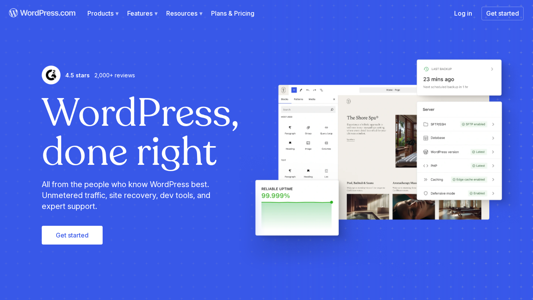 | AI-анализ | The portal WordPress.com offers a solution for creating and hosting a website using WordPress, with no technical setup required. The platform provides built-in hosting, premium themes, and powerful tools for website development. Users can start building their website for free and upgrade to paid plans for additional features. WordPress.com offers a variety of services including WordPress hosting, website builder, blog creation, and professional email. Additionally, it provides website design services, commerce tools, and enterprise solutions. The platform features a user-friendly interface, with resources, plans, and pricing information readily available. WordPress.com is known for its expertise in WordPress and offers features such as unmetered traffic, site recovery, dev tools, and expert support. It also ensures site security with firewalls, encryption, brute force, and DDoS protection. The platform allows for fast data transfer and performance with a global CDN and offers flexible storage solutions. Users can claim their |