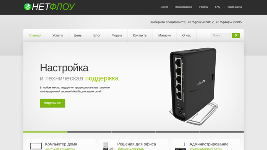 | AI-анализ | --- This website offers IT services for companies including computer repair, internet setup, installation of routers, OS reinstallation, and software configuration remotely, using MikroTik and Windows or MacOS operating systems. Keywords include IT outsourcing, IT outsourcing for companies, IT outsourcing in Minsk, IT services, IT services for companies, and IT staffing in Minsk. The website also provides network diagnostics and repair, IT support for home and office users, and solutions for both home and business clients. Services include computer setup at home, virus removal, and Wi-Fi router configuration. The company has been in business for over 10 years and guarantees professional and efficient IT solutions at affordable prices. The website also offers website creation, contextual advertising, and hosting services, as well as server administration. The domain is netflow.by. |