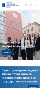 | AI-анализ | language: ru This online resource is dedicated to Belarusian State University of International Languages (БГУИЯ), also known as Минский государственный лингвистический университет (МГЛУ) or Белорусский государственный университет иностранных языков. The website offers information about the university, its organization, and various educational programs in foreign languages and linguistics. Keywords associated with the website include "university", "education", "languages", "linguistics", and "Belarus". The website also features sections on contacts, courses, and services. The interface is customizable with options for font size, color scheme, and accessibility settings. The main sections of the website include "University", "Education", "Science", and "Contacts". The university's mission and achievements, faculty and research centers, student |