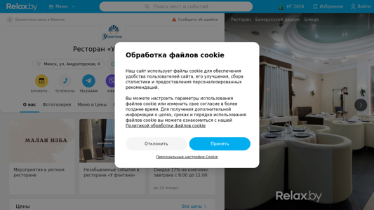 | SEO-описание | Ресторан У фонтана в Минске – отзывы, адрес на карте, телефоны, график работы и карта проезда на Relax.by |