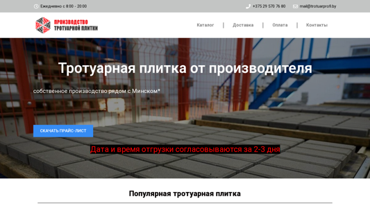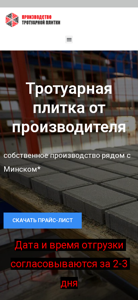 | AI-анализ | --- The portal Trotuar Profi offers trotuar paving stones from the manufacturer. Daily from 8:00 to 20:00, contact +375 29 570 76 80 or mail@trotuarprofi.by. The manufacturer produces its own trotuar paving stones near Minsk. A price list can be downloaded. Delivery and payment arrangements are confirmed within 2-3 days. Popular paving stones include the Vibropressed paving stone, the 'Kirpichik' paving stone rated 5/5 for 15 rubles per square meter, and the 'Staroy Gorod' paving stone rated 5/5 for 20 rubles per square meter. Other options include the 'Trovnitsa', 'Bordyr sadovy', 'Vosmerka |