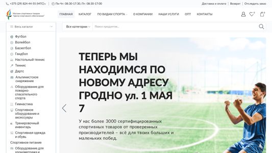 | AI-анализ | This online resource is a sports equipment and supplies store named "Центр Спортивного Обеспечения" (Center of Sportive Provisions). The website is operated by an organization based in Belarus, as indicated by the .BY domain. The title of the homepage is "Главная" (Main), and the description meta tag provides information about the store being a WooCommerce demo for various product categories including electronics, fashion, furniture, niche store, clothing, sport, shoes, jewellery, and multi-vendor marketplace. The keywords meta tag contains several sports-related terms such as "футбол" (football), "волейбол" (volleyball), "баскетбол" (basketball), "гандбол" (handball), "теннис" (tennis), and "гимнастика" ( |