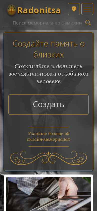 | AI-анализ | The website Radonitsa is a free online memorial where users can create a memorial page for their loved ones. The site invites friends and family to pay their respects, share memories, photos, and videos. Keywords include online memorials, memorial sites, and free online memorials. The most frequent words on the site are memory, create, memorial, memory of, together, so that, Radonitsa, close ones, share, give, close, your, memories, years, smartphone, make, your, album, photos, and video. The site offers personalized memorials that can be made visible only to the creator or shared with friends and family. Users can create a shared photo album, add biographical information, and light virtual candles in memory of their loved ones. The company behind the site is OOO "ЯАЯ" located in Belarus. |
