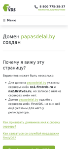 | AI-анализ | The website is a hosting service for Belarusian .BY domains, created by the 'Host of the Year' and 'Creative of the Year' National Award of the Russian .RU Center. The domain papasdelal.by was created using FirstVDS servers, but its records are not found on their name servers. The domain may have been deleted from FirstVDS, but the name servers are still listed with the registrar. To attach a domain name to one's own server, users need to contact FirstVDS support and provide proof of domain ownership through their domain registrar. Users can create DNS records for their domains directly from FirstVDS's server name management panel, ISPmanager, or through DNSmanager. FirstVDS support is available 24 hours a day, 7 days a week. To contact them, users can create a support ticket in their personal account or call the toll |