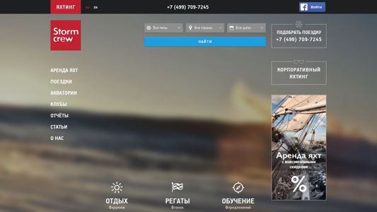| AI-анализ | The web project Storm Crew is an agency offering yacht rental services and yachting trips. It provides information on various types of yachts, cruises, regattas, and educational opportunities for those new to yachting. The website also includes reports, articles, and advice on yacht rentals and the benefits of yachting over staying in a hotel. The site is available in Russian and English and offers phone contact information. The top words on the website include 'storm', 'crew', 'yachting', 'more', 'ocean', 'time', 'bigger', 'already', 'through', 'what', 'was', 'team', 'me', 'under', 'this', and 'better'. The website also includes information on various destinations, including Australia, the Azzores, and the Caribbean. It offers a FAQ section to address common questions about yachting, such |