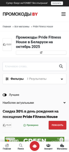 | Название / Заголовок | Промокоды и скидки Pride Fitness House на октябрь 2025 | ПРОМОКОДЫ BY |