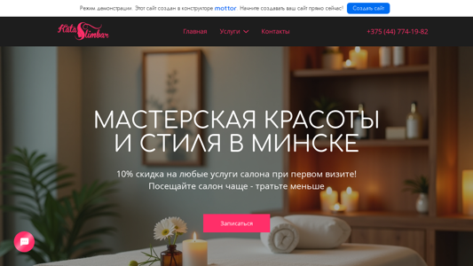 language: ru The web project 'Cалон косметологии в Минске от promassage.by' is a website for a beauty salon located in Minsk, Belarus. It offers professional facial treatments including cleaning and massage, as well as device-assisted cosmetology, peelings, and RF lifting. The site highlights effective procedures for enhancing beauty and youth, and provides a phone number and social media contacts for booking a consultation. Keywords associated with the site include 'salon' and 'cosmetology'. The site is built using a website constructor, and includes a call-to-action for booking a consultation with a mandatory consent form for data collection. The salon offers several advantages, including free consultations, discounts for first-time visitors, and a wide range of services all in one place, which is conveniently located near a metro station.