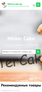| AI-анализ | The portal Mistercake.by is an online store selling confectionery products, offering new items and catering to customers in Borisov and Belarus with delivery services. The website includes a catalog, news section, delivery and payment information, tracking, reviews, and contact information with a shopping cart and 'My account' feature. Products for sale include various types of cakes, boxes for cakes, chocolate, and extracts, among others. The store also offers a premium tubus box for cakes and a transparent tubus box for cakes. The contact information provided is a phone number and email address. The domain is registered to IP Brystyy Yegor Nikolaevich. The business address is given as Borisov, ul.Gagarina, 50B, cellar floor. The store operates daily from 10:00 to 19:00. |