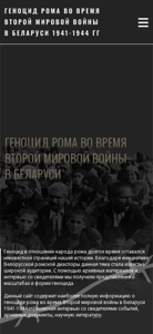 | AI-анализ | The website is dedicated to the genocide of the Romani people during the Second World War in Belarus. It features interviews with witnesses, archival documents, and scholarly literature. The site aims to provide a comprehensive overview of the genocide of the Romani people in Belarus between 1941 and 1944, using primary sources and personal accounts to shed light on the scale and nature of the atrocities. The site also includes a map and materials section for further reading. |