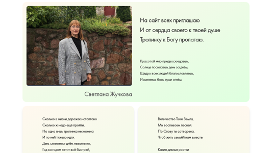 | SEO-описание | На сайт всех приглашаю И от сердца своего к твоей душе Тропинку к Богу пролагаю. |