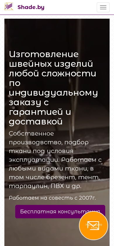 | AI-анализ | --- This online resource, Shade.by, specializes in the production of various items from waterproof fabrics for technical purposes: covers for boats, catamarans, automobiles, and motorcycles. All items are made to order and delivered in the shortest possible time. The company offers production of sewing items of any complexity and works with various types of fabric, including tarps, tents, PVC, and others. The production is carried out with a conscience since 2007. The catalog includes sections for contacts and information, with a phone number and email address provided for inquiries. The site also features a description of the production process for tarps and burlap, as well as the transparency of PVC fabric and its applications. The site's main focus is on the production of auto covers, floor mats, and other items. |