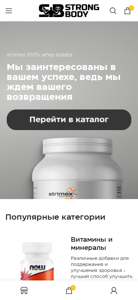 | AI-анализ | The website is an e-commerce platform selling sports nutrition and food supplements named Strongbody.by. The main product categories include protein, protein desserts, protein bars, amino acids, vitamins, minerals, and multicomplexes, fatty acids, omega-3, fat burners, creatine, and a pre-training complex. Brands sold include 1WIN, ALLNUTRITION, Activlab, BioTechUSA, BSN, Bombbar, BootyBar, CHIKALAB / CHIKA SPORT, CaberMass, Dr. Neumann, FIT KIT, FitMax, Fitness SHOCK, Fitrule, Geneticlab, Nutrition, GALVANIZE NUTRITION, Healthy’s Hell Labs, Kelvin, Levrone, NaturalSupp, Nature foods, |