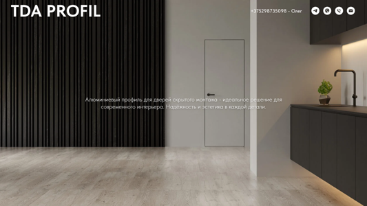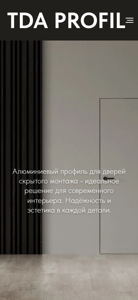 | AI-анализ | The website TDA PROFIL offers aluminum profiles for hidden door mounting. It is an ideal solution for modern interiors with a focus on durability and aesthetics in every detail. The website provides various aluminum profiles such as 59x44, 51x42, 62x44, 80x45, 80x40, 31x17, 47x5, 51x21, 40x9, 59x20, 45x21, and 6x7. These profiles serve different purposes including door frames, door panels, and various types of door joints. The website also offers aluminum corner pieces, door moldings, and other related accessories. The company is located in the village of Bolshoe Stiklevo and offers self-pickup or delivery within |