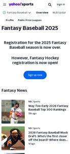 | Название / Заголовок | Fantasy Baseball 2025: Create or Join a League, Rankings, Analysis & More | Fantasy Baseball | Yahoo! Sports |