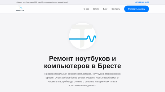 | Название / Заголовок | Ремонт ноутбуков и компьютеров в Бресте: цены | Чистка, замена термопасты | TOPLAB |
