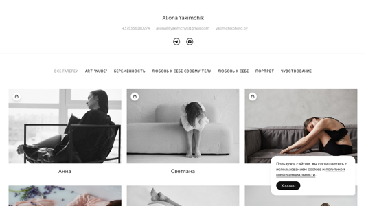 | AI-анализ | The website is a personal portfolio for photographer Aliona Yakimchik, showcasing her works under the domain name yakimchik.gallery.photo. The title and description of the website are both named after the photographer herself. Keywords related to her name and photography appear frequently, such as "Aliona," "Yakimchik," "art," "nude," and "portrait." The website contains several galleries featuring various themes, including "Art," "Nude," and "Bereменность," which translates to "pregnancy" in English. The photographer expresses her love towards herself and her body, as well as her subjects, through her works, which are displayed in the galleries. The website is copyrighted by Aliona Yakimchik and includes a contact email address and phone number for potential inquiries. Visitors using the website agree |