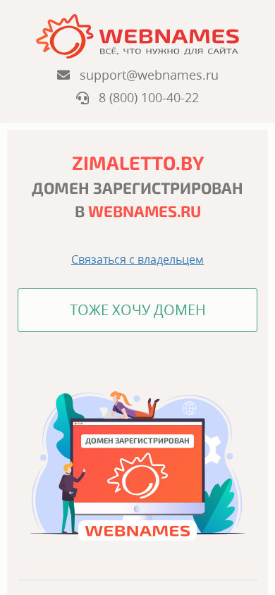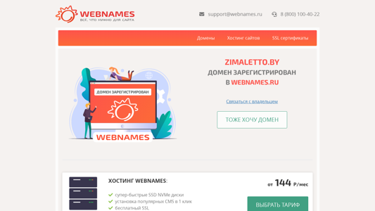 | Название / Заголовок | Домен zimaletto.by зарегистрирован на Webnames.ru |