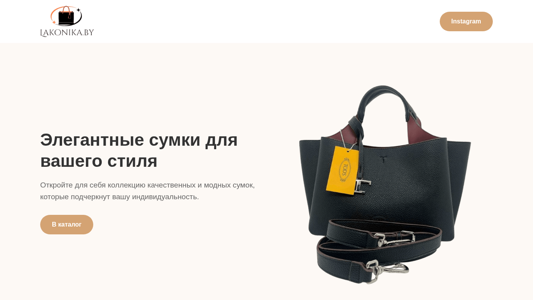 | AI-анализ | The web project "MoonBags - Элегантные сумки для женщин" is a Belarusian e-commerce site dedicated to selling elegant handbags for women. The title and description of the site both emphasize the quality and style of the bags on offer, and encourage visitors to explore the collection and discover bags that suit their individuality. The site also includes a mention of Instagram, suggesting a social media presence. The business is registered under the name of O.G. Klimova with the UNP number 193873638 and is located in Minsk, Belarus. The contact details and legal information are provided at the bottom of the page. The domain name is "lakonika.by". |