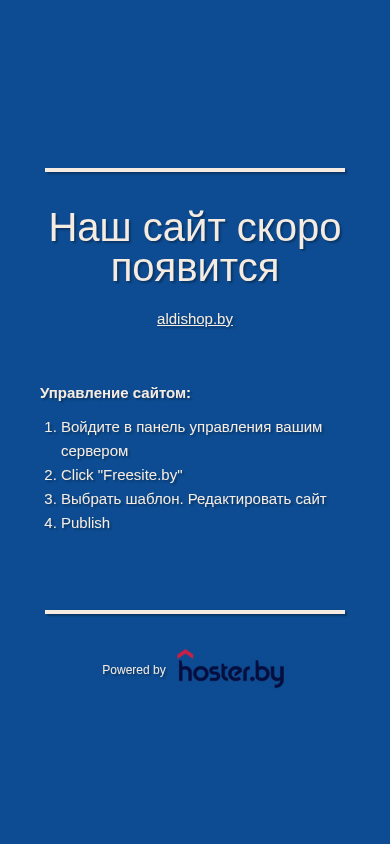| AI-анализ | The web project "Our site will soon appear" (aldishop.by) is an upcoming site under development, with a focus on website management. Users will be able to log into their server panel and manage various aspects of their site using the provided tools. Features include the ability to select a template, edit the site, and publish it. The site is powered by an unspecified platform. |