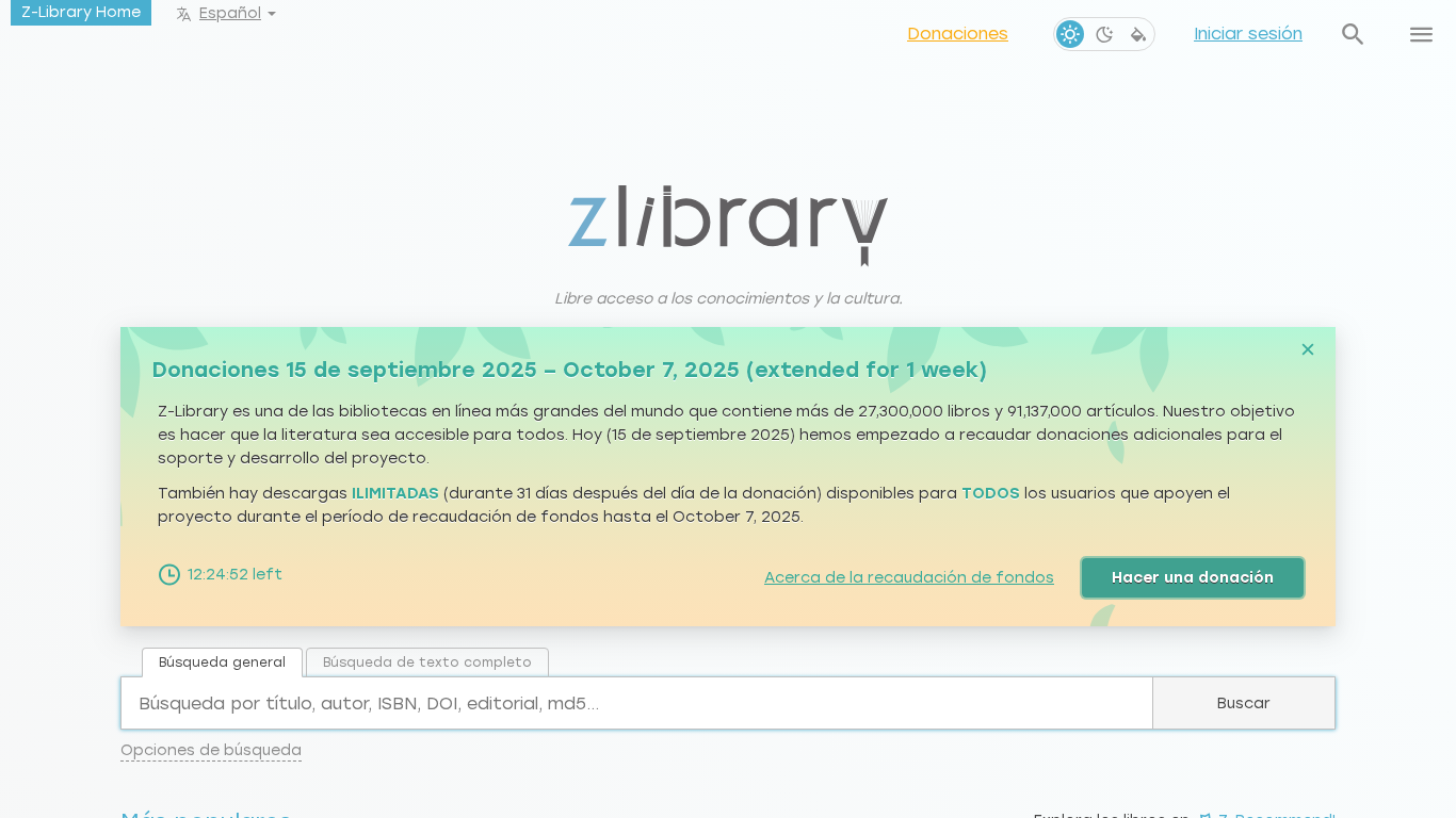 | Название / Заголовок | Z-Library es la mayor biblioteca digital del mundo. Libre acceso a los conocimientos y la cultura. |