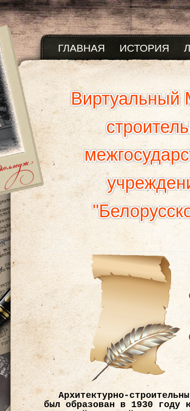 | AI-анализ | --- The web project "Museum of the Architectural-Construction College" is a digital archive dedicated to the history of the Architectural-Construction College in the framework of the Belarusian-Russian University. The college was established in 1930 as the Architectural-Construction Technicum named after N.K. Krupskaya. The first graduating class was in 1933, but the institution ceased to exist with the onset of World War II. The website provides access to various historical documents, including photographs, diplomas, and archival records, that illustrate the college's early years. The collection includes a photo of the first graduating class, L.V. Makarenko's diploma, a copy of I.I. Bliznețov's diploma during his time at Moğilevgrždanproekt |