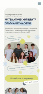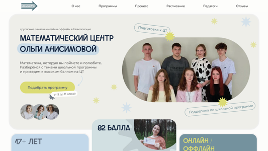| AI-анализ | --- This website is titled "Математический центр Импликация" and offers mathematics education for students in Novopolotsk. It provides both online and offline group lessons for school programs and test preparation, with a focus on grades 5 to 11. The center was founded by Olga Anisimova, a master of physics-mathematical sciences and experienced repeater, who aims to help students grow in a supportive environment while their parents stay informed of their progress. The website includes information on programs, processes, schedules, and testimonials, as well as a registration system for trial lessons. The teaching approach is described as clear, sequential, and affordable, with an emphasis on understanding and application. The first trial lesson is offered without commitment, allowing students to evaluate the format, teaching style, and learning system before deciding to enroll in the full program. The website also features |