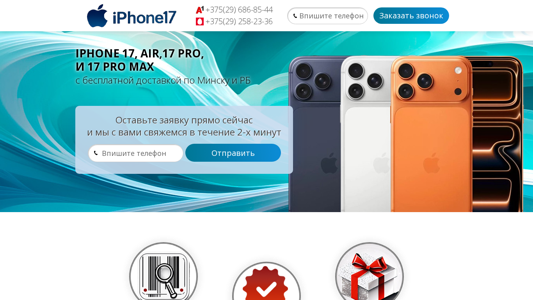 | SEO-описание | В нашем магазине вы можете купить оригинальный iPhone 17, 17 Air, 17 Pro, 17 Pro Max по низкой цене. Бесплатная доставка по всей Беларуси. iPhone 17, 17 Air, 17 Pro, 17 Pro Max в рассрочку по карте Халва. Гарантия 3 года. |