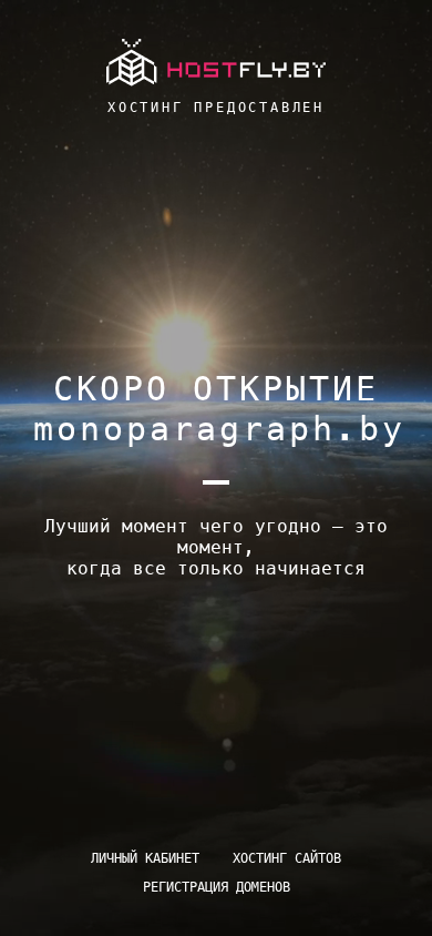 | AI-анализ | This online resource, monoparagraph.by, is a hosting platform that soon will be opening, based on the title and description metadata. It is focused on providing hosting services and domain registration for websites. The keywords include "скоро" (soon), "открытие" (opening), "хостинг" (hosting), "момент" (moment), and "предоставлен" (provided). The top words indicate that the best moment for something is when it begins, and that the platform offers a personal cabinet for hosting sites and domain registration. |