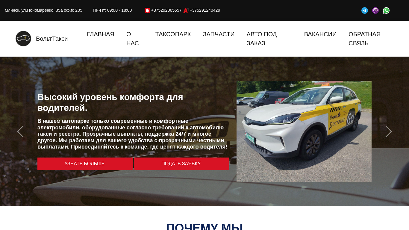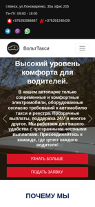 | AI-анализ | The website VoltTaxi is a taxi company based in Minsk, Belarus. It specializes in modern and comfortable electric vehicles for taxi services, adhering to the regulations set for taxi cars. The company offers transparent and honest payments, 24/7 support, and other benefits. VoltTaxi is an official partner of Yandex and A1 taxi in Belarus, providing the best deals on the market for drivers. The company offers a high commission rate, a stable income, and a convenient working schedule, along with individual approaches and bonuses. VoltTaxi has its own garage with regular vehicle inspections, full documentation, passenger insurance, and cost coverage for maintenance, repair, charging, and cleaning. The website provides information about joining the team and offers a quick and straightforward registration process. |