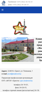 | AI-анализ | The web project "КУП «ЖРЭУ г.Бреста» — КУП «ЖРЭУ г.Бреста»" is a website for the Communal Unitary Enterprise "Жилищное ремонтно-эксплуатационное управление г. Бреста" (JREU Brest). The site provides information about the company, its structure, vacancies, contacts, and various services. Users can apply for electronic forms, access normative-legal documents, and learn about the rules of public utility services. The site includes a section for managing common living quarters (information about occupancy in dormitories), a safety center, and a biodiversity year 2025 initiative. The site is operated from the address 224016 g.Brest, ul. Papinina, 1, and can be reached via email |