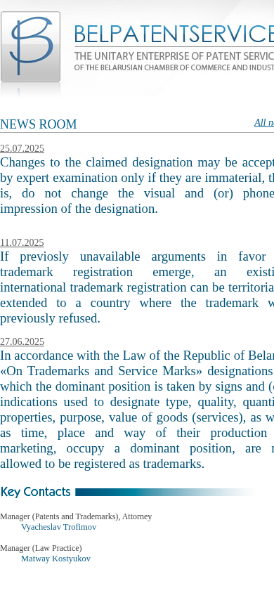 | Ключевые слова | Belpatentservice - intellectual property rights protection in Belarus. Trademarks and patents. Belarusian patent attorneys. |