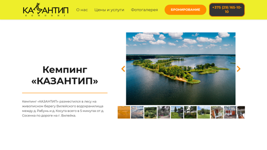 | AI-анализ | --- This website belongs to the Kazantip Camping, offering a recreational experience by the shores of the Viiley Reservoir. The camping site is located in the forest, between the villages of Rabun and Kosuta, approximately 5 minutes from Sosenskaya village on the way to Vilniyka. The Kazantip Camping features various facilities and services. The price for one person is listed on the provided price-list, with children under 12 years old having free admission. The camping area covers 1-4 person heated cabins with a terrace, fireplace, and beds; 6-10 person and 20-40 person shelters with fireplaces, kitchenettes, and terraces; and 50-150 person shelters with fireplaces, kitchenettes, and restrooms. A full-service Russian banya |
