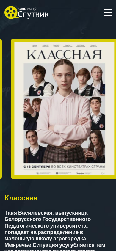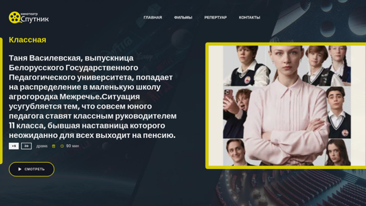 | AI-анализ | --- The portal "Spadarozhnik.by" is a movie theater website for the city of Pruzhany, Belarus. It provides information on current and upcoming films, a movie repertory, and contacts for the box office. The website offers a variety of film genres including horror, drama, and thriller, with some movies rated 18+. The main page displays films currently in the cinema and those coming soon, along with their titles, durations, and genres. The repertory page lists all available films with their respective ratings, genres, and durations. The contact information for the box office includes a phone number for ticket sales. The website is built using the React App technology. Among the current films, "Долгая прогулка" is a 108-minute horror, thriller, and drama about an annual competition where participants must walk |