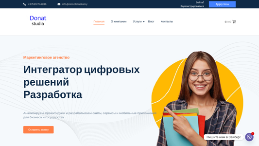 | AI-анализ | The portal DonatStudio is a marketing agency based in Minsk, Belarus. The website offers services for website development, digital integration solutions, mobile application development, and design. The company has been in business for 7 years and has completed over 270 projects for various industries including trade and sales, tourism and leisure, automotive services and detailing, services in the field of beauty and health, logistics and transport, repair and construction, industrial and production enterprises, real estate and realtor services, restaurants and catering. DonatStudio specializes in the creation of effective and attractive one-page websites, and also offers logo design services. The website development process is carried out in a step-by-step manner with partial payment options. The company has a team of 4 specialists and has over 9k users on its projects. The development of mobile applications for iOS and Android, websites using |