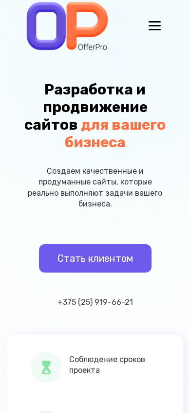 | SEO-описание | Наша компания OfferPro специализируется на интернет маркетинге. Создание сайтов, продвижение сайтов, настройка рекламы. Находимся в Минске. |