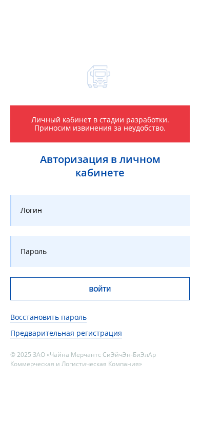 | AI-анализ | The web project '06651' is a private website under development for a personal cabinet. Users can expect to find features for authorization, login, password recovery, and a preview registration. The site also mentions a 'tampon terminal' and a 'open platform' with a size of 5,367.5 square meters. It began functioning in July 2023, and currently, 32 vehicles are in the terminal. The company responsible for the website is ZAO «Чайна Мерчантс СиЭйчЭн-БиЭлАр Коммерческая и Логистическая Компания». |