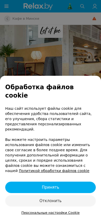 | SEO-описание | Кафе & пекарня Let it be (Лэт ит би) в Минске – ⚡меню с ценами и фото, ⚡отзывы посетителей, адрес на карте, ✍бронирование столика онлайн на Relax.by. |