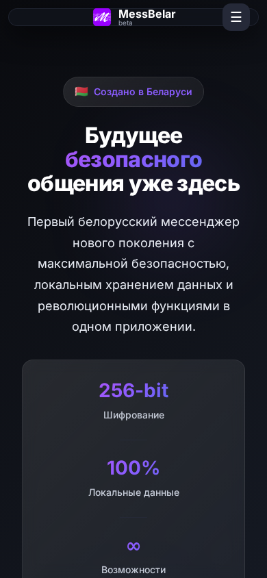 | Название / Заголовок | MessBelar - Белорусский мессенджер нового поколения | Максимальная безопасность |
