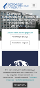 | AI-анализ | This website belongs to the Belarusian State University (BSU) and is dedicated to their annual scientific conference for students and postgraduates. The conference features presentations from various faculties including International Relations, Radio Physics and Computer Technologies, Chemistry, Philosophy and Social Sciences, Sociocultural Communications, Geography and Geoinformatics, Economics, Theology, Business, Journalism, Law, Biology, Applied Mathematics and Informatics, History, Mechanico-Mathematical Sciences, Physics, and Philology. Users can register for the conference, view past presentations, and submit their own research papers for consideration. The website is operated by the Belarusian State University and has a policy regarding the handling of cookie files. Users are required to provide a username and password for registration. |