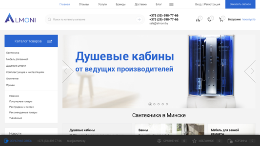 | SEO-описание | Almoni.by - Интернет-магазин сантехники в Минске. Большой каталог душевых кабин, ванн, унитазов, умывальников и множества других товаров для дома. |