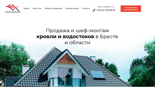 | AI-анализ | --- The portal CentRoof is a building materials supplier based in Brest, Belarus. It specializes in the sale and installation of various roofing and water drainage systems, including metal, PVC, and falface roofing. The website offers a wide range of related products such as gutter systems, membranes, insulation, and accessories. The company has over 10 years of experience in the industry and claims to have installed over 2 million square meters of roofing. CentRoof provides a warranty for the installation and quality of the materials. The contact information includes a phone number and an address in Brest. |