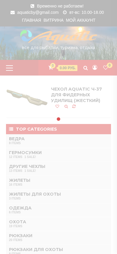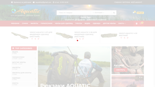| SEO-описание | Рыболовное снаряжение Акватик - рюкзаки, сумки, чехлы для удилищ, тубусы, одежда, жилеты. Высокое качество, низкие цены, скидки и широкий ассортимент в наличии |