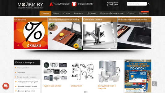 | SEO-описание | Продажа качественной сантехники с бесплатной доставкой по Минску | Мойки.бай Интернет магазин сантехники Mojki.by. Доставка во все города Беларуси. Звоните: ☎ +375 (29) 708-50-40 |