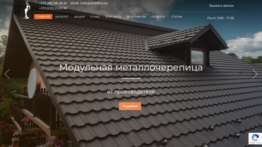 | AI-анализ | --- The website StalnaiaLedi.by offers various building materials including metal roofing, facade panels, and fencing. Key products include metal tile roofing, modular metal roofing, and Grandline panels for facades. The company also produces vinyl sidings and water drainage systems. The website provides information on their production in Goemle and contact details. Their operating hours are from 9:00 to 17:30, Monday to Friday. A current promotion offers a discount of 0.5 euros per square meter on metal roofing. The website includes sections for their advantages, help with delivery, and information on their company and contacts. |
