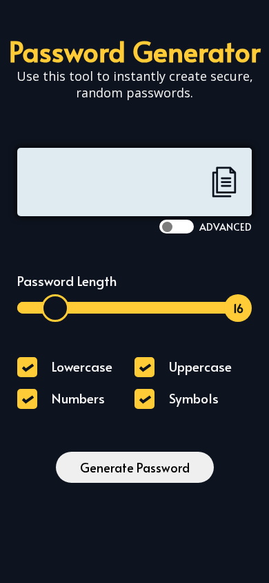 | SEO-описание | Generate random, secure, and strong passwords for a safe online experience. |