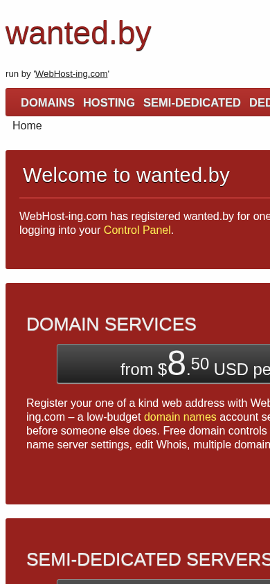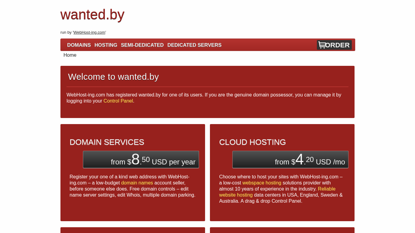 | SEO-описание | wanted.by is operated by 'WebHost-ing.com' and firmly advises you to use any of their solutions: domain name registration, shared hosting, Virtual Private Server, semi-dedicated & dedicated server solutions. |