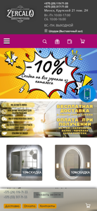 | AI-анализ | The website Zercalo.by is an e-commerce platform selling mirrors with LED lighting. The website offers a range of mirrors in various sizes, shapes, and styles, including circular, rectangular, square, figurative, and oval ones, as well as mirrored cabinets with LED lighting. The website provides a catalog, price list, and delivery information. Users can request a consultation or download a presentation. The website also has a shopping cart feature and a contact section. The top keywords on the website include 'mirrors', 'LED-lighting', 'mirrored cabinets', and 'consultation'. The contact information includes two phone numbers and an address in Minsk. The website is open for business on weekdays from 10:00 to 17:00 on Saturdays from 10:00 to 16:00, and closed |