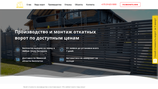 | AI-анализ | The portal is a manufacturing and sales website for swing gates. The title is "Production and Sale of Swing Gates." The description includes keywords such as "gates," "swing gates," "manufacturing," "sales," "production," and "Belarusian." The top words include "gates," "swing gates," "manufacturing," "sales," "production," "prices," "BELARUS," "free," "free delivery," "delivery," "Minsk region," "cold weather," "calculate," "2003," "experience," "installation," "qualification," "custom production," "metal profile," "insulation," "sound insulation," "weight," "varieties," and "quotes." The website offers manufacturing and delivery of swing gates within seven days, with free delivery in the Minsk region. The gates |
