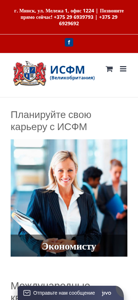 | AI-анализ | This website, titled "Институт Сертифицированных Финансовых Менеджеров (Великобритания)" (Institute of Certified Financial Managers, UK), offers international financial qualifications in Russian language. The diploma issued by this institution is recognized in 70 countries. The website presents itself as a global network of professionals. The contact details provided are +375 (17) 268 50 65 and +375 (17) 268 52 38. The keywords associated with the website include words such as "diploma," "financial," "ISFM," "certification," "management," "international," and "risk-oriented." The website offers a variety of courses and qualifications, ranging from financial management and accountancy to strategic financial management and risk-oriented |