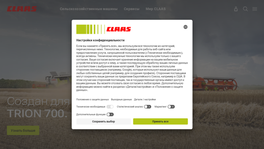 | SEO-описание | Официальный сайт компании CLAAS: сельскохозяйственная техника CLAAS - от тракторов, зерноуборочных комбайнов и кормоуборочных машин до телескопических погрузчиков, пресс-подборщиков и кормоуборочных комбайнов. |